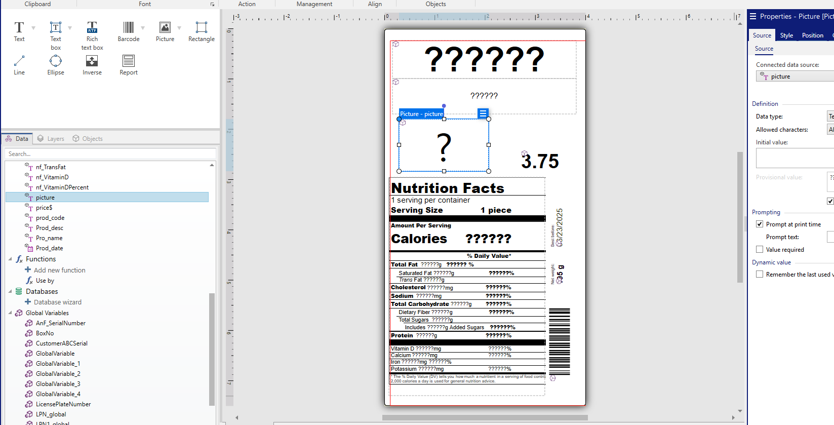 Optimize accuracy and reduce errors by linking your labeling system directly with your ERP, MES, or PLM platforms. Automatically populate FDA-mandated fields such as batch numbers, nutrition facts, allergen declarations, and ingredient lists - ensuring every label reflects up-to-date, verified data.